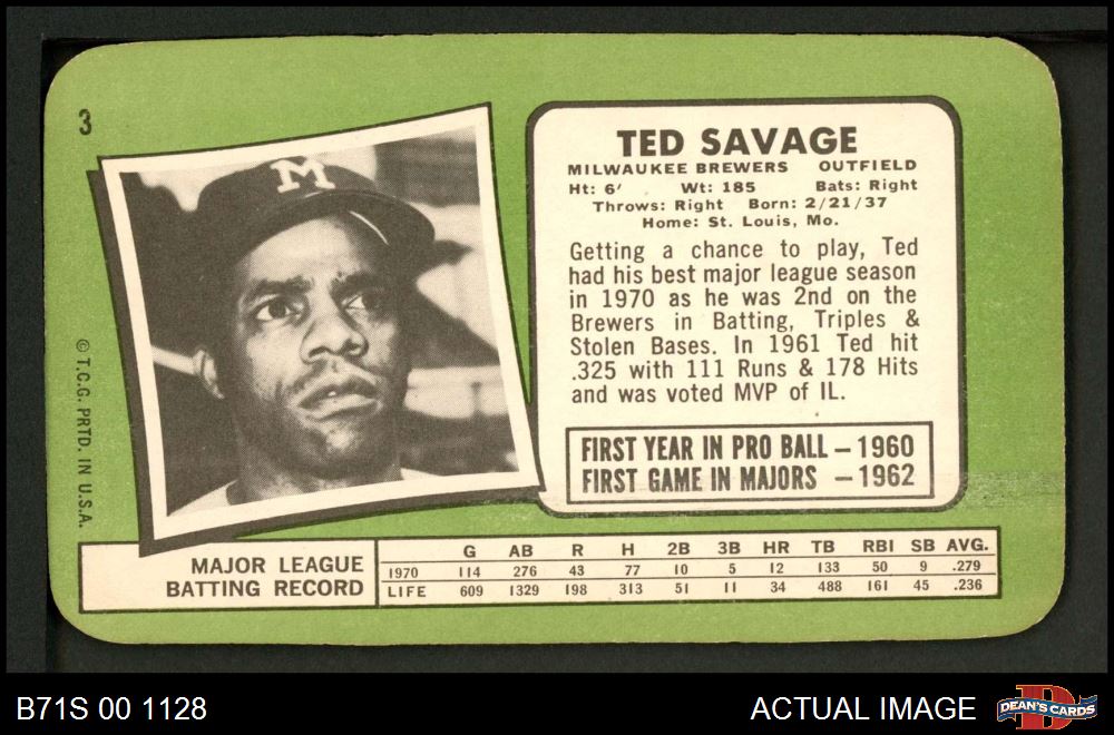 1971 Topps Super #3 Ted Savage