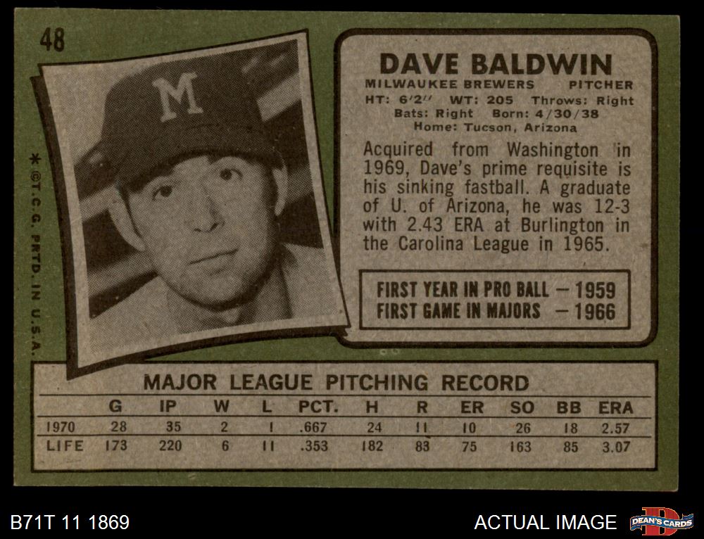 1971 Topps #48 Dave Baldwin 6 - EX/MT