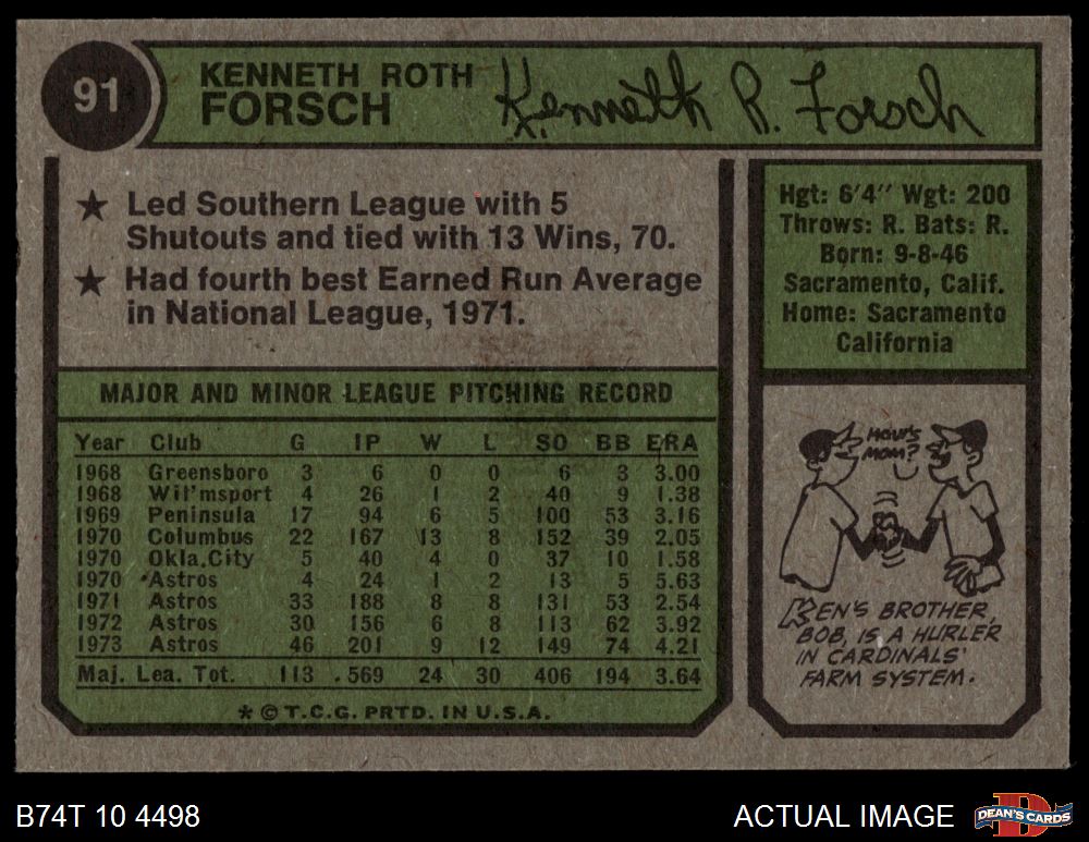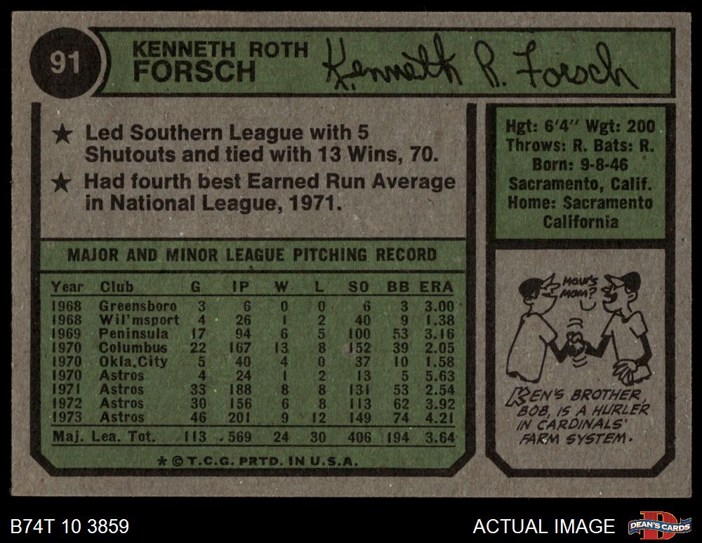 1974 Topps #91 Ken Forsch 6 - EX/MT