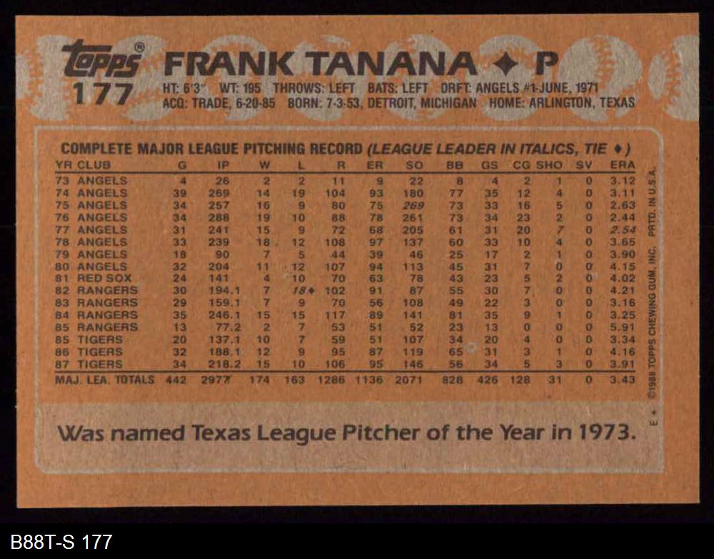 1988 Topps #177 Frank Tanana