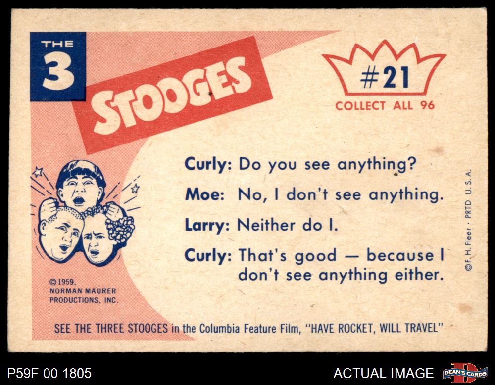 1959 Fleer Three Stooges #21 Peek boo 6 - EX/MT