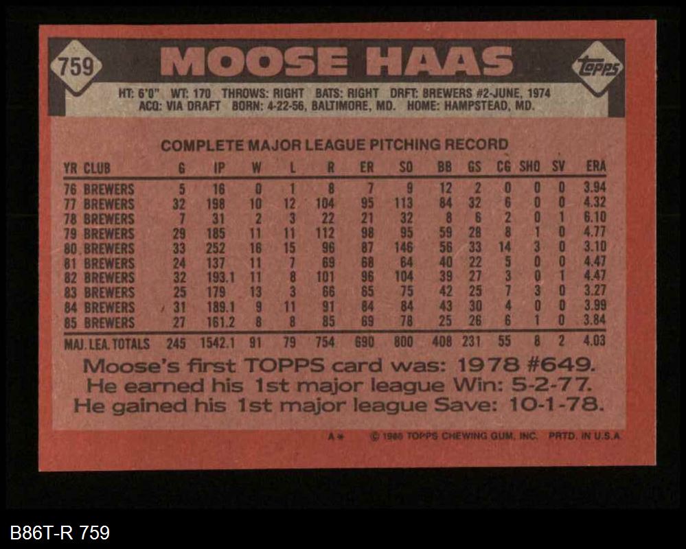 1986 Topps Baseball Cards (4,656 available)1986 Topps Brewers (265 available)