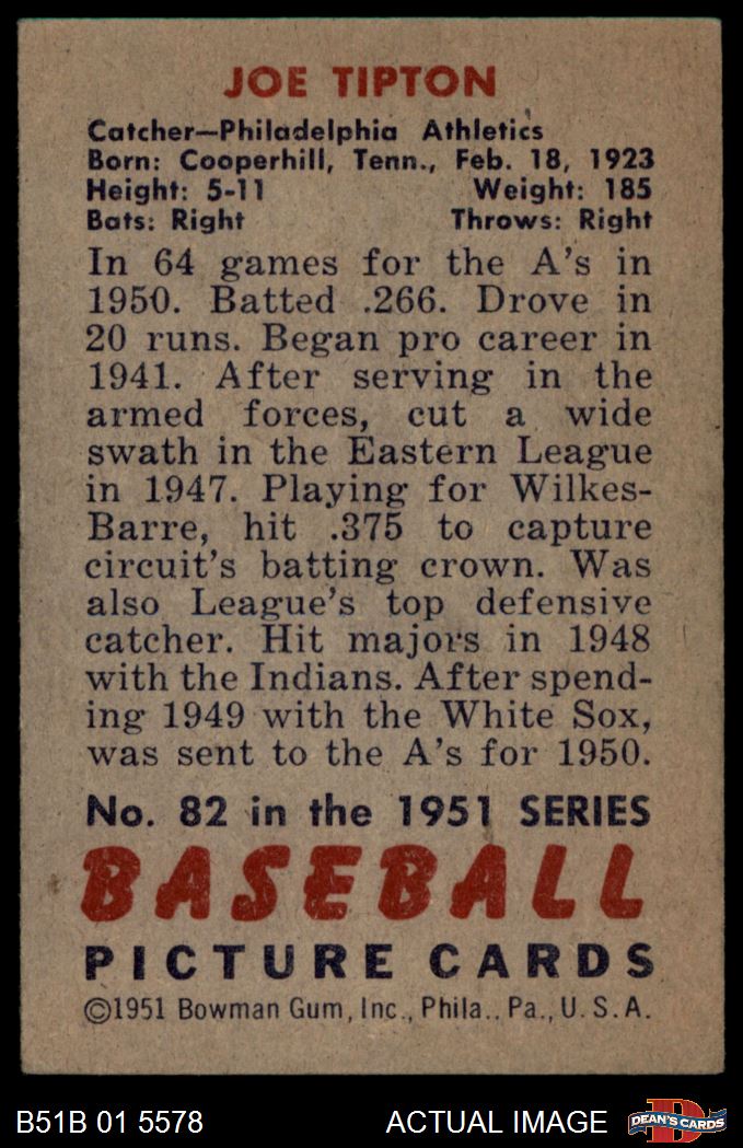 1951 Bowman #82 Joe Tipton 4 - VG/EX