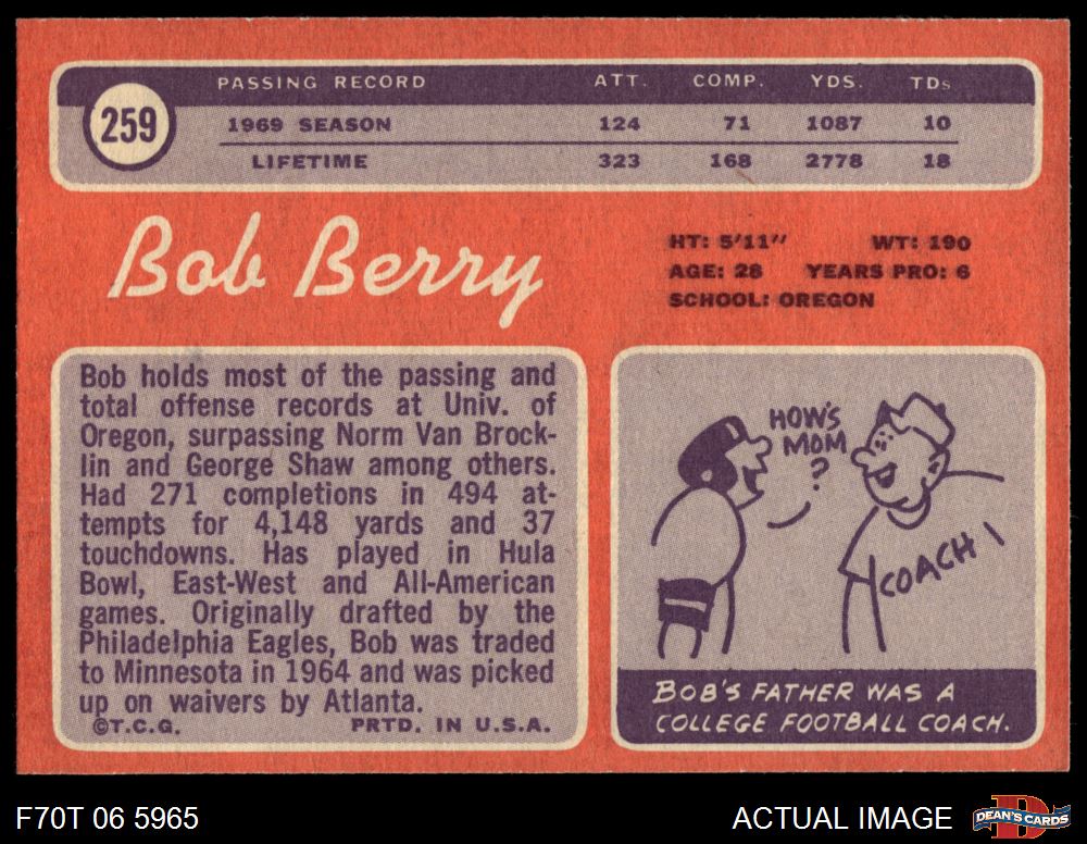 1970 Topps #259 Bob Berry 5 - EX