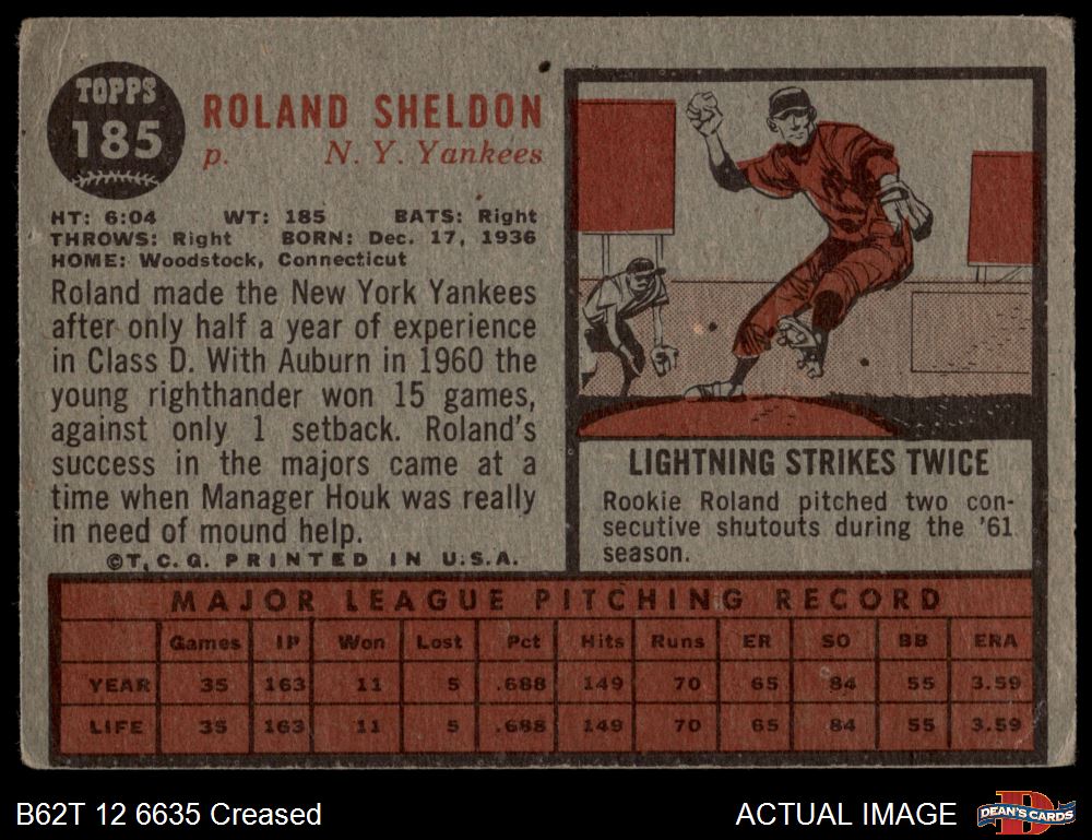 1962 Topps #185 NRM Roland Sheldon