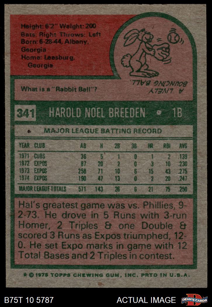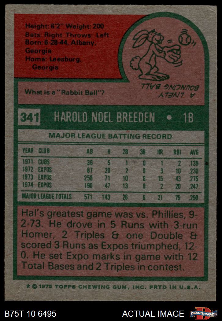1975 Topps #341 Hal Breeden