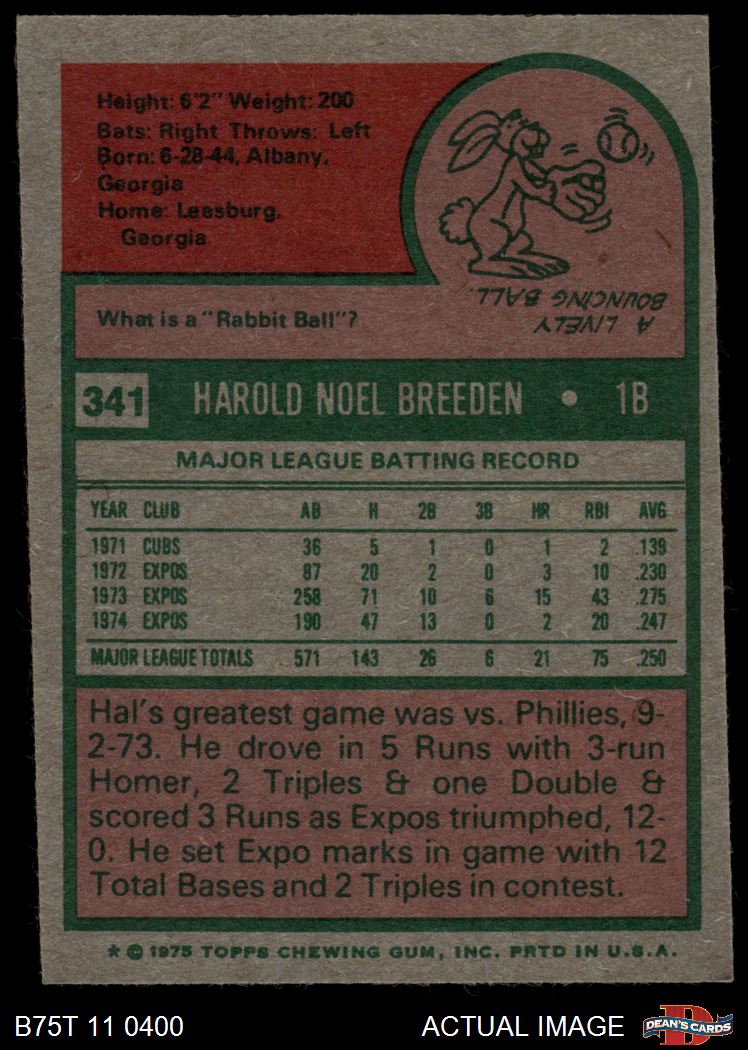 1975 Topps #341 Hal Breeden 5 - EX