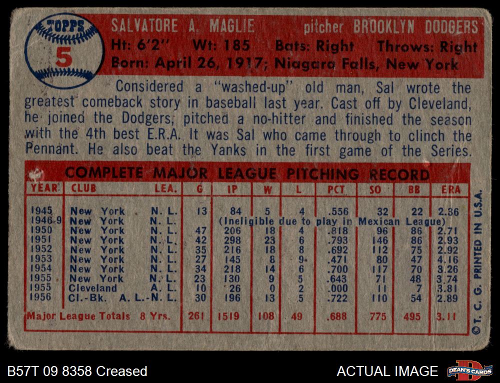 1957 Topps #5 Sal Maglie Front Thumbnail