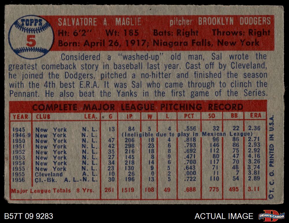 1957 Topps #5 Sal Maglie 1 - POOR