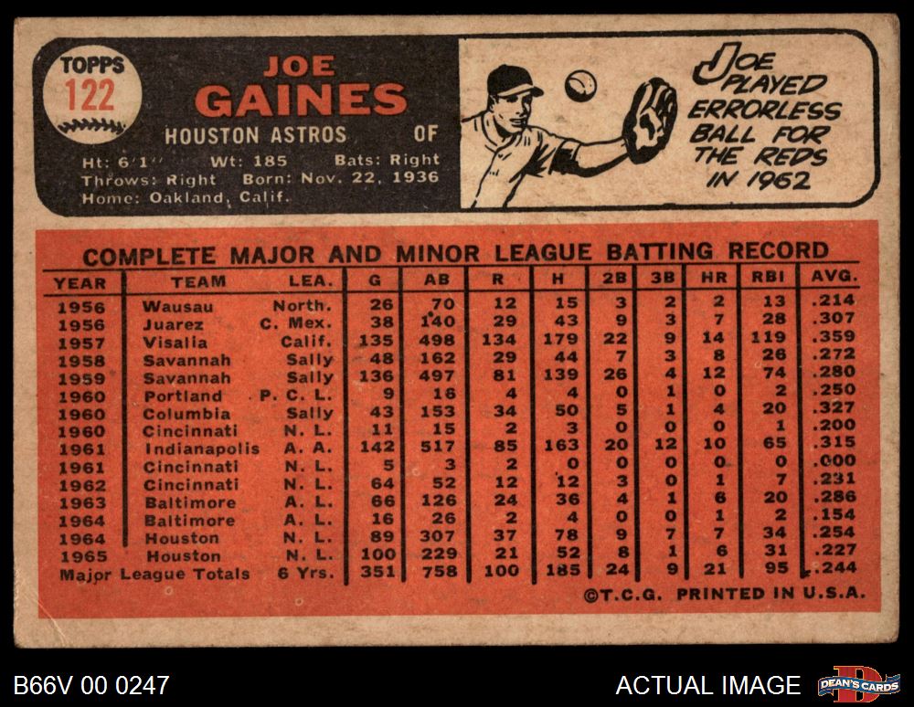 1966 Topps Venezuelan #122 Joe Gaines 3 - VG