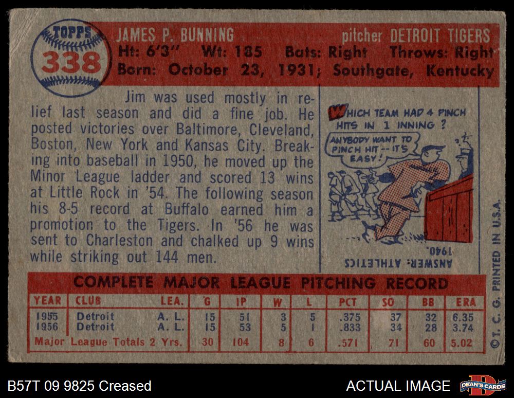 1957 Topps #338 Jim Bunning 2 - GOOD