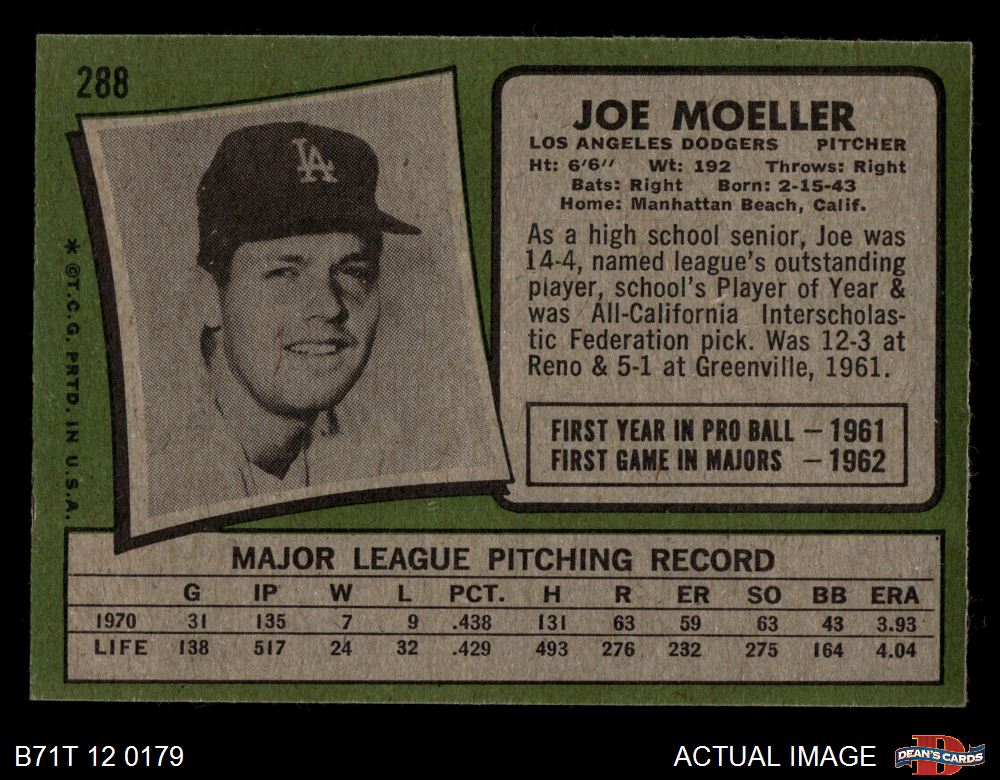 1971 Topps #288 Joe Moeller 7 - NM