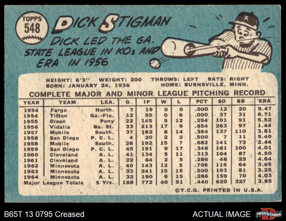 1965 Topps #548 Dick Stigman 3.5 - VG+