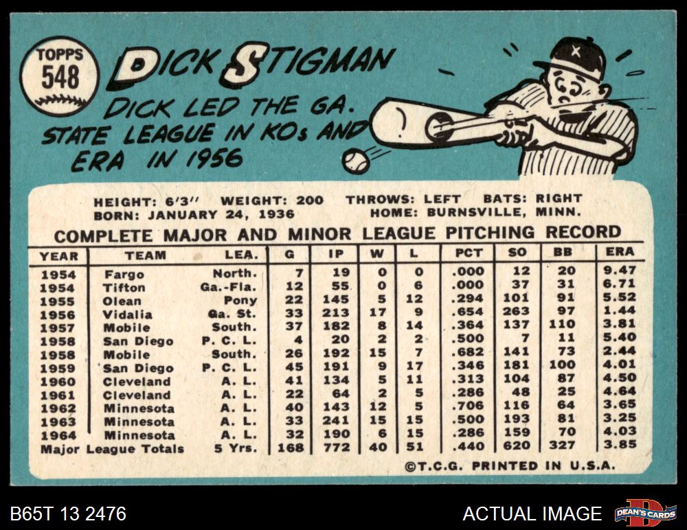 1965 Topps #548 Dick Stigman 6 - EX/MT