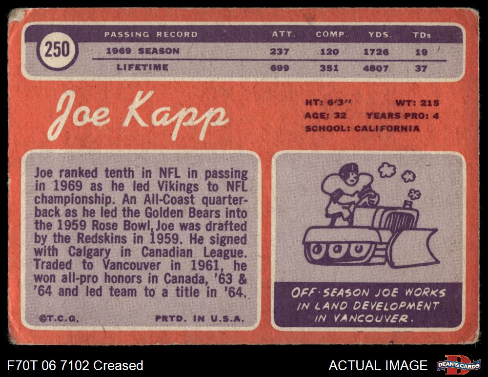 1970 Topps #250 Joe Kapp Front Thumbnail