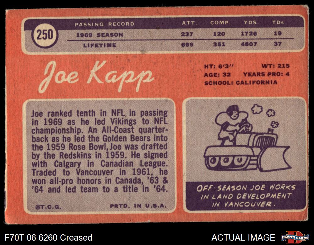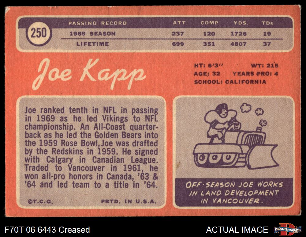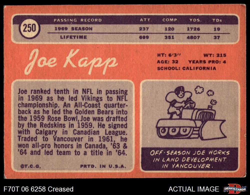 1970 Topps #250 Joe Kapp 2 - GOOD