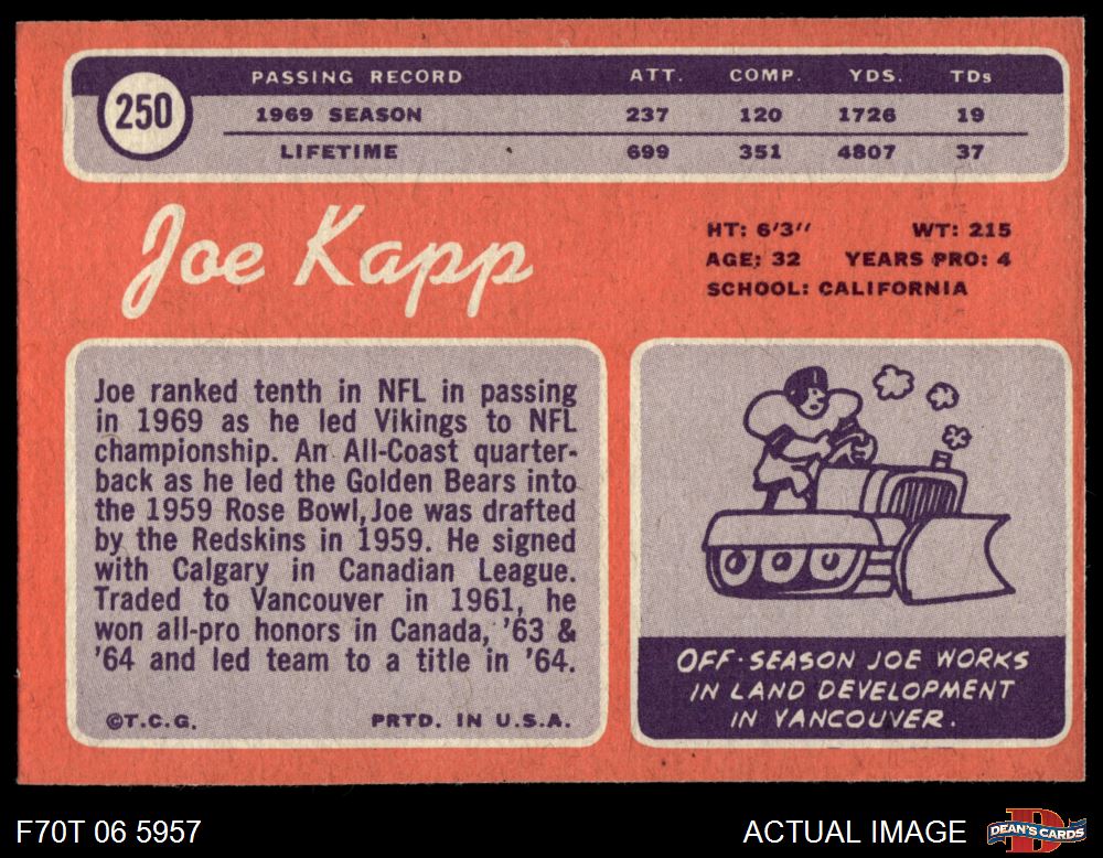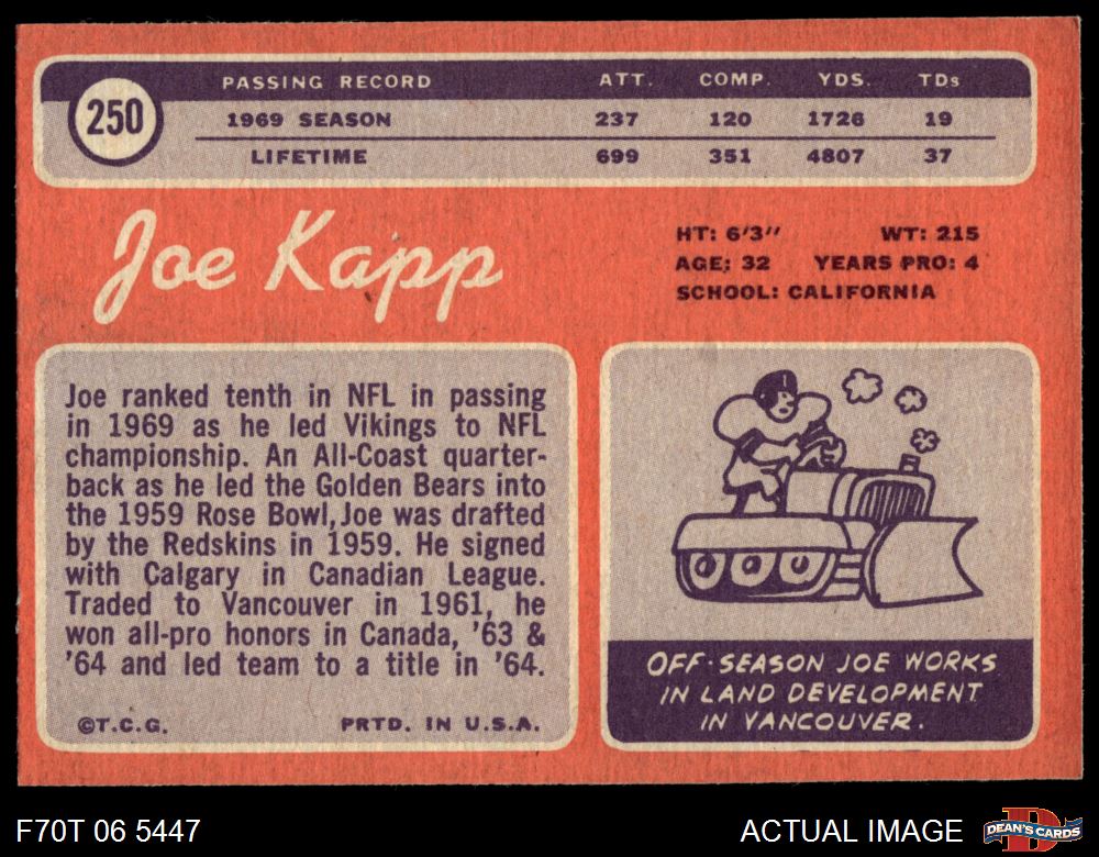 1970 Topps #250 Joe Kapp 6 - EX/MT