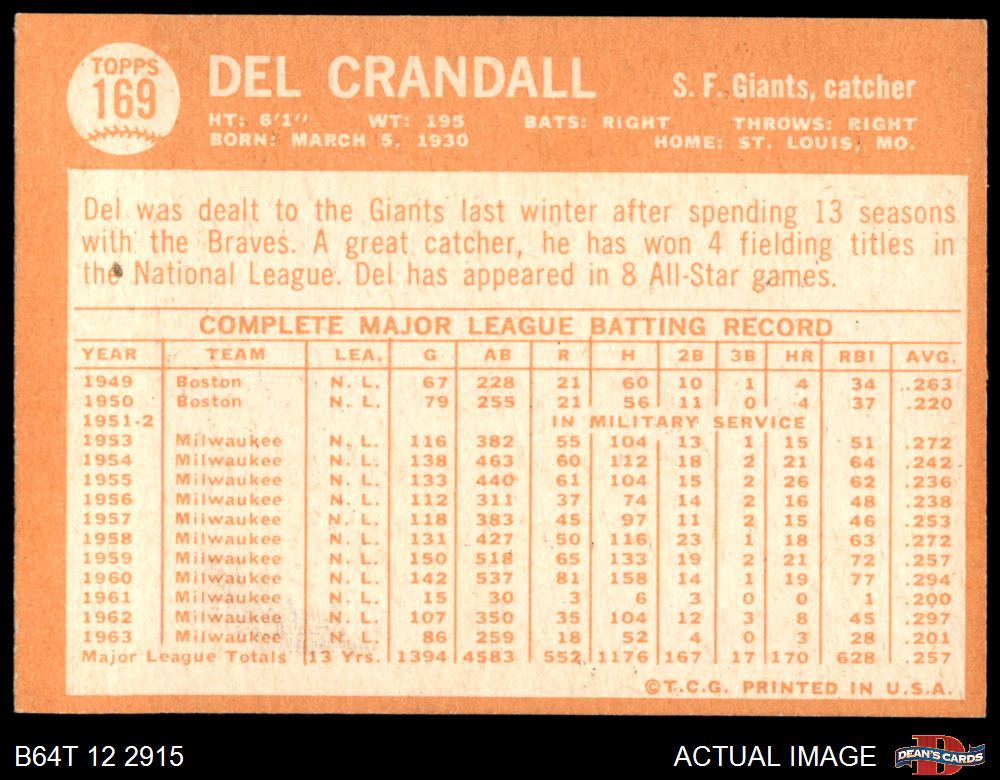 1964 Topps #169 Del Crandall 6 - EX/MT