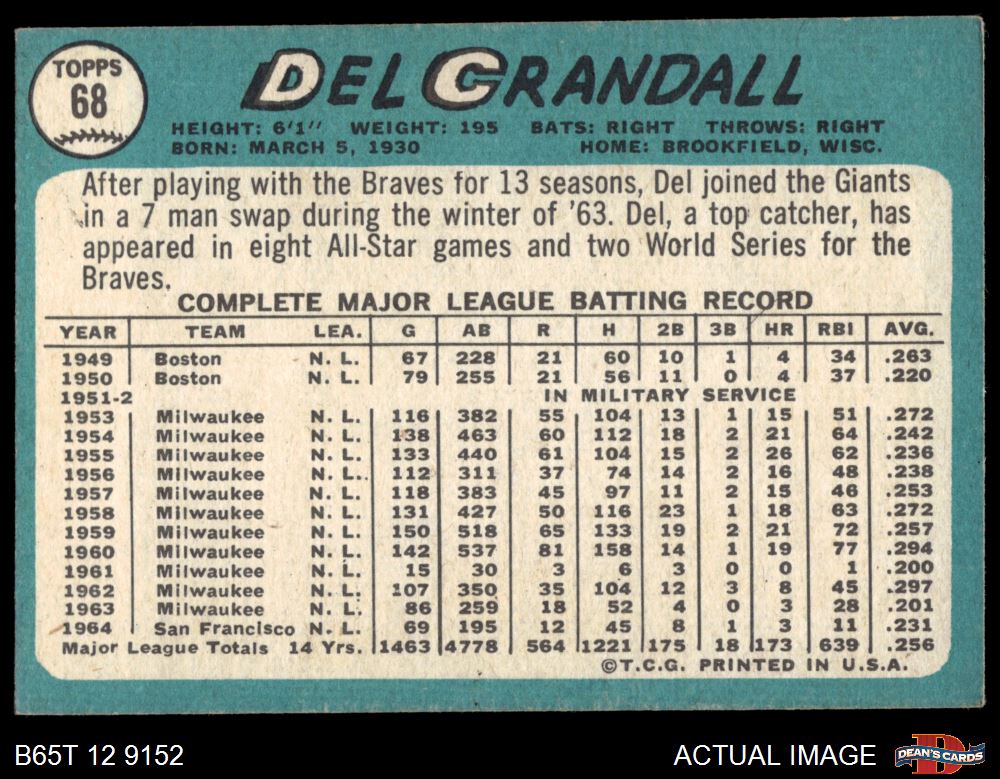 1965 Topps #68 Del Crandall 2 - GOOD