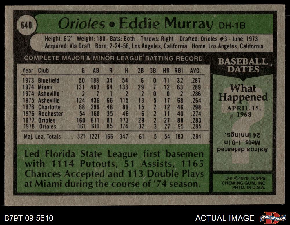 1979 Topps #640 Eddie Murray 3 - VG
