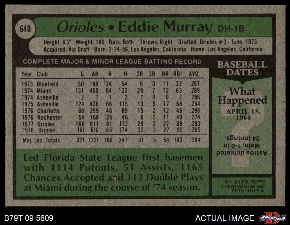 1979 Topps #640 Eddie Murray 4 - VG/EX