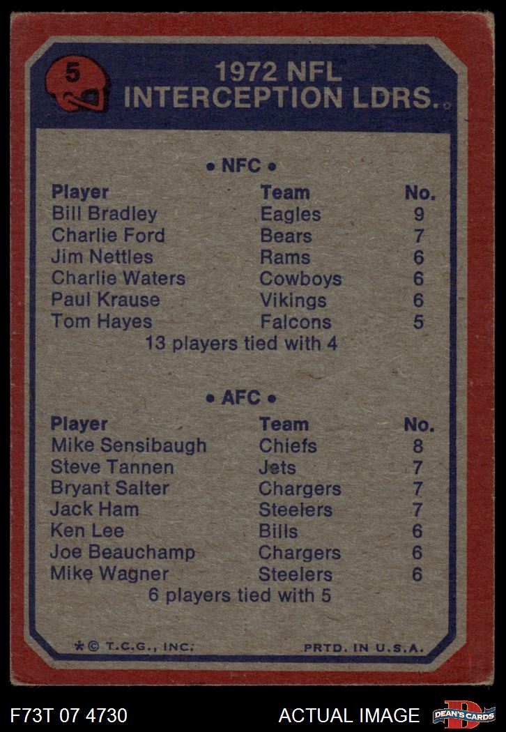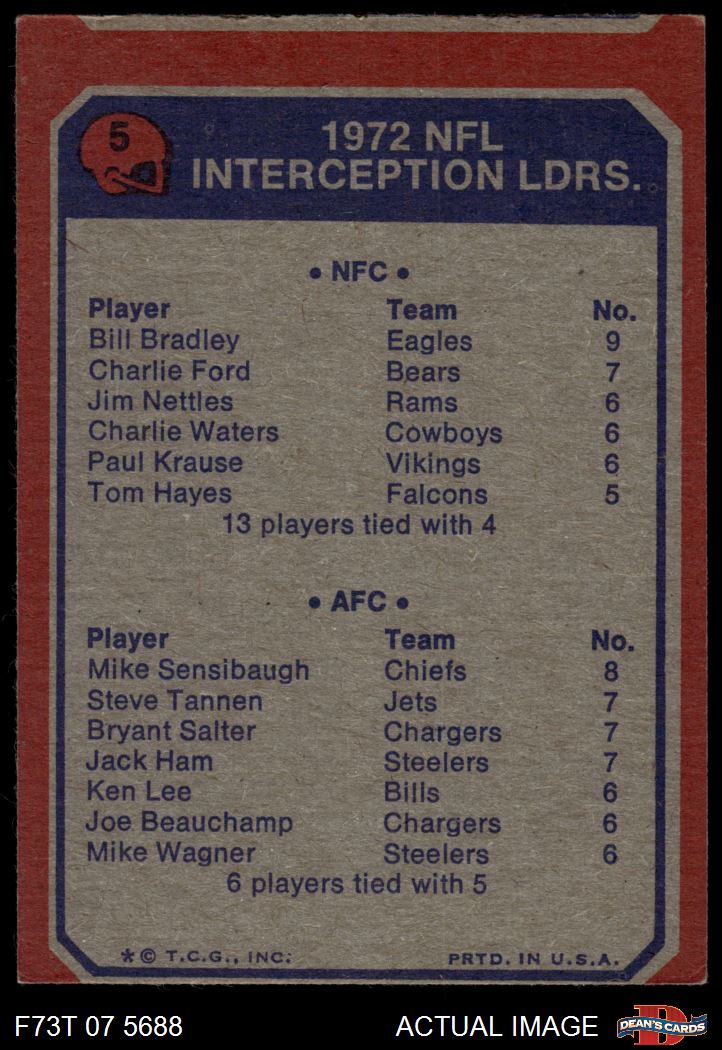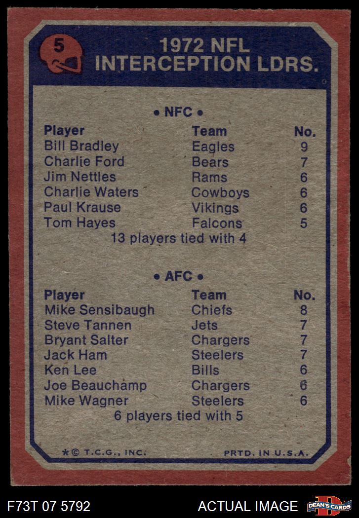1973 Topps #5 - Bill Bradley / Mike Sensibaugh Interception Leaders 2 - GOOD