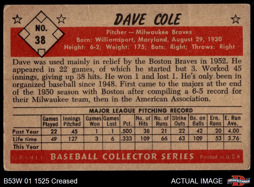 1953 Bowman B&W #38 Dave Cole