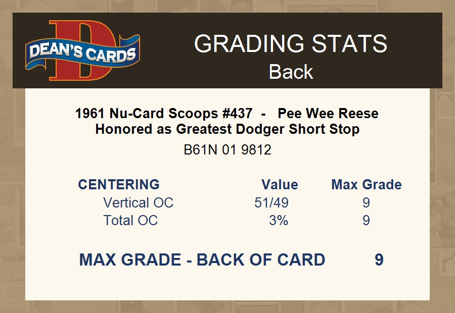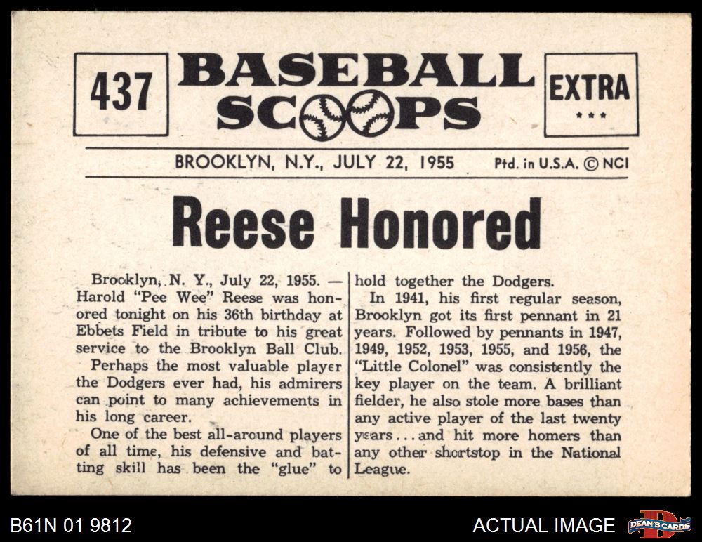 1961 Nu-Card Scoops #437 - Pee Wee Reese Honored as Greatest Dodger Short Stop 2 - GOOD