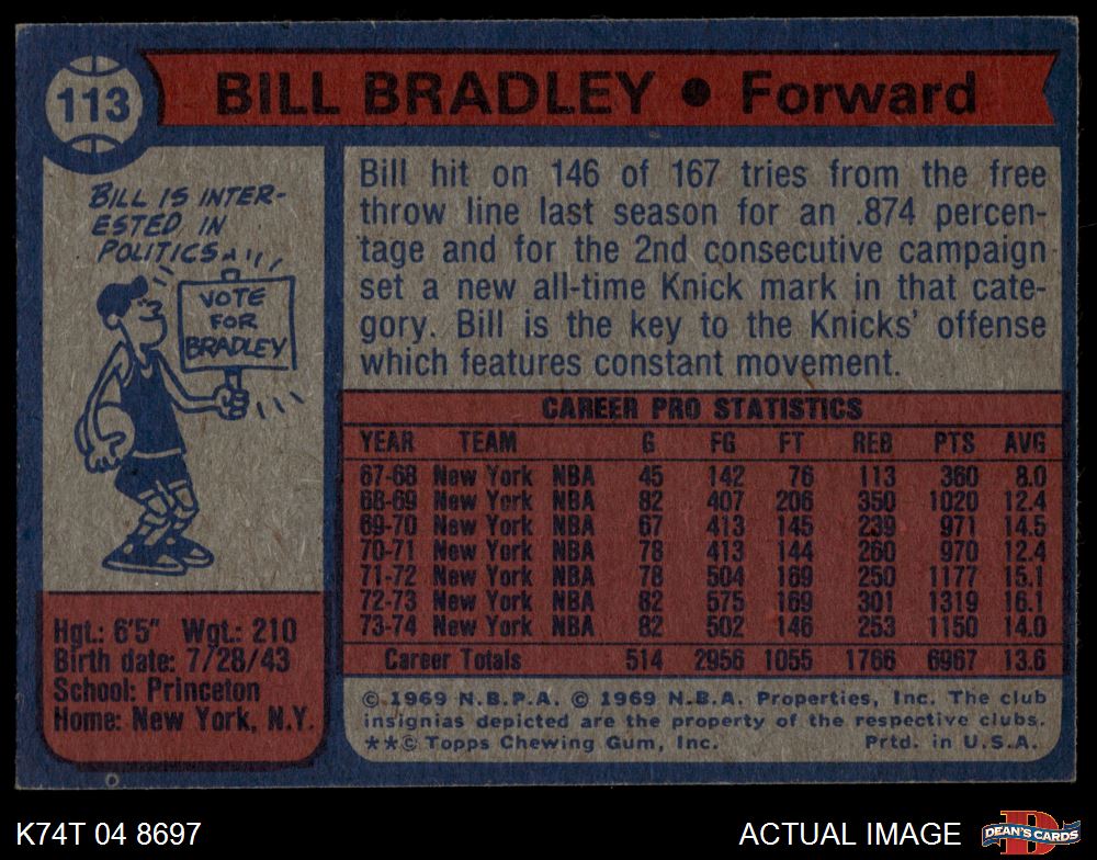 1974 Topps #113 Bill Bradley 4 - VG/EX