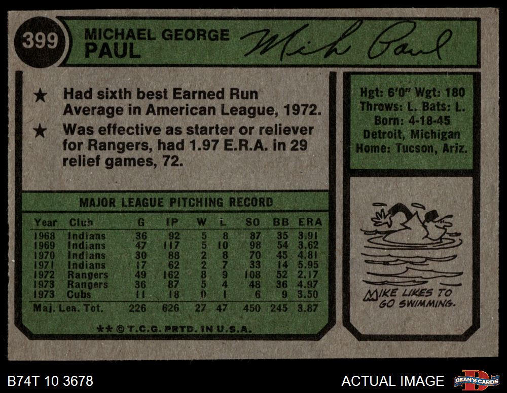 1974 Topps #399 Mike Paul 4 - VG/EX