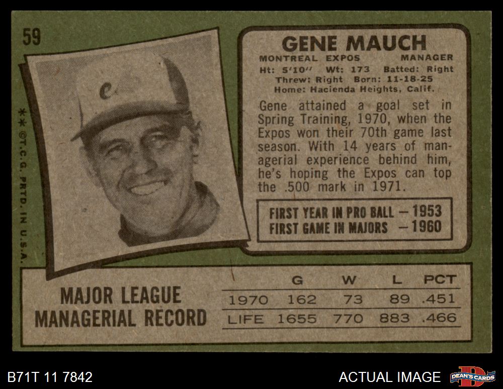 1971 Topps #59 Gene Mauch 4 - VG/EX