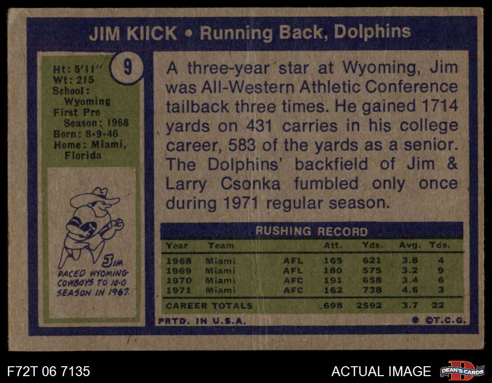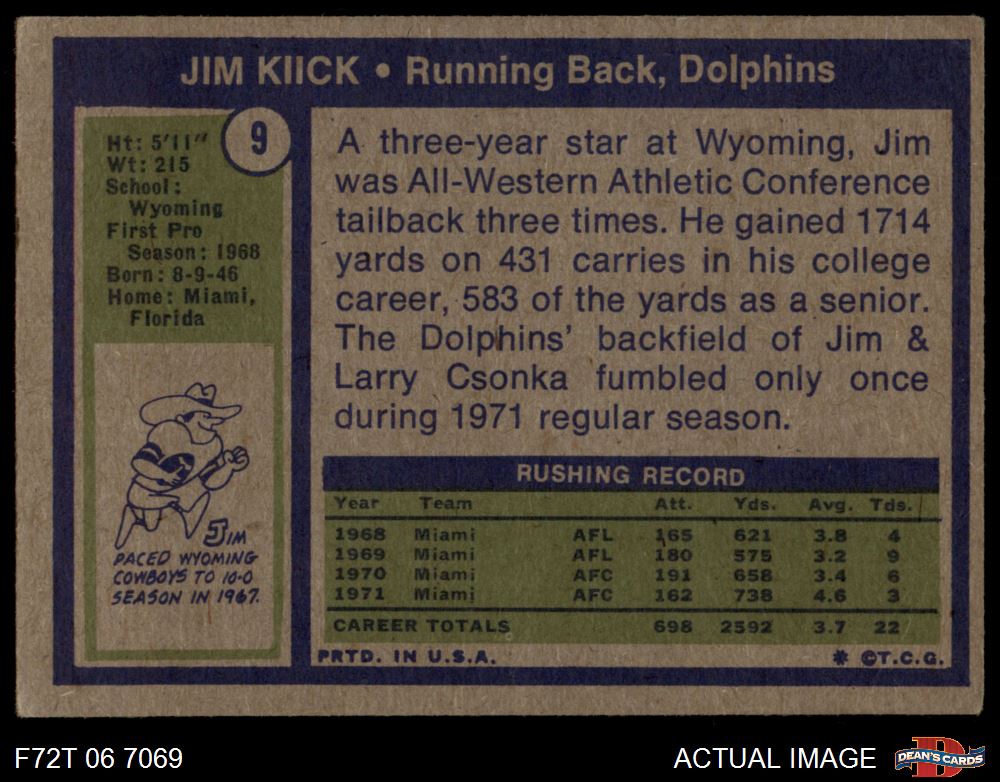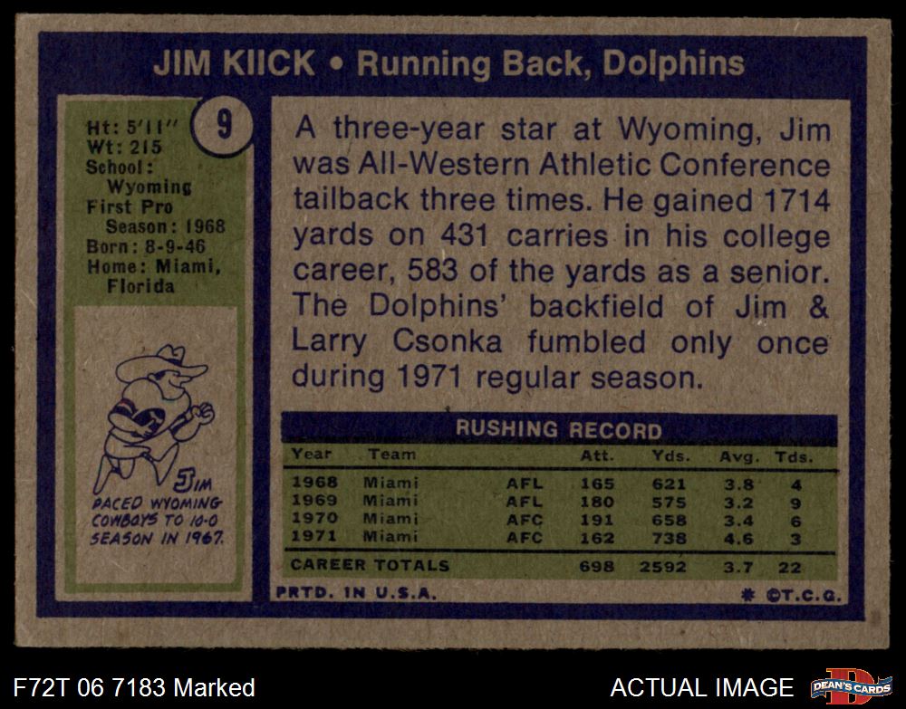 1972 Topps #9 Jim Kiick Front Thumbnail
