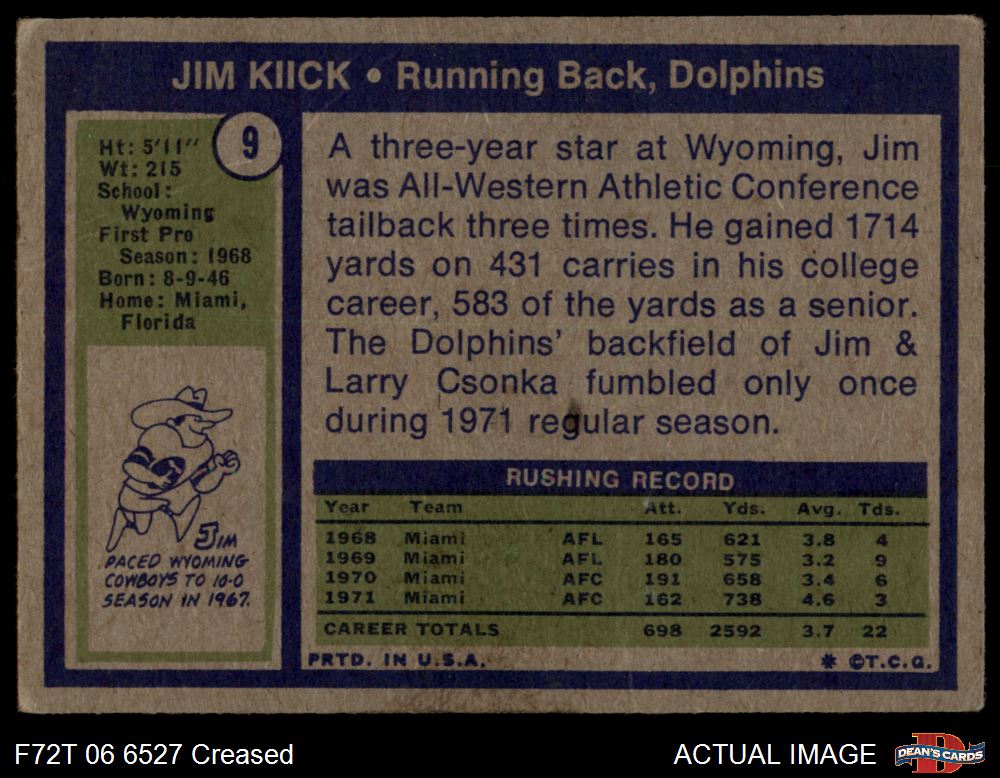 1972 Topps #9 Jim Kiick 2 - GOOD