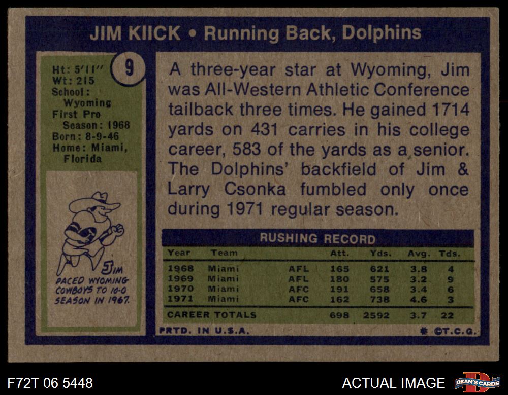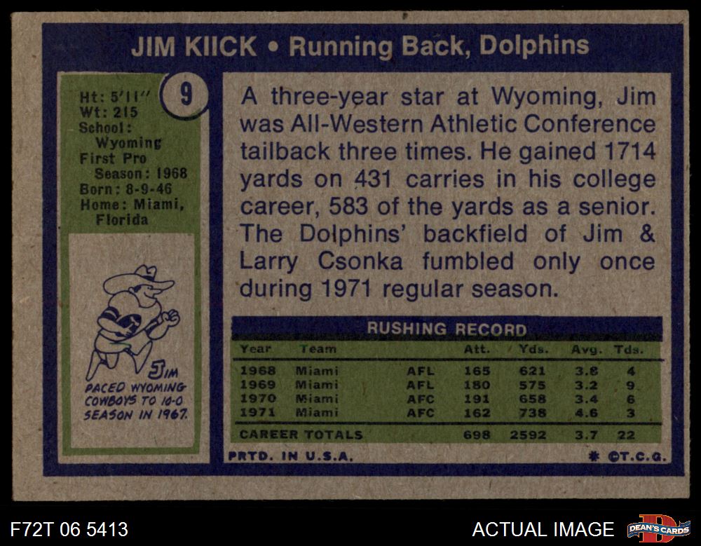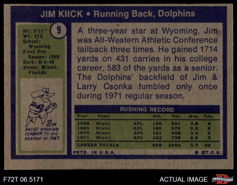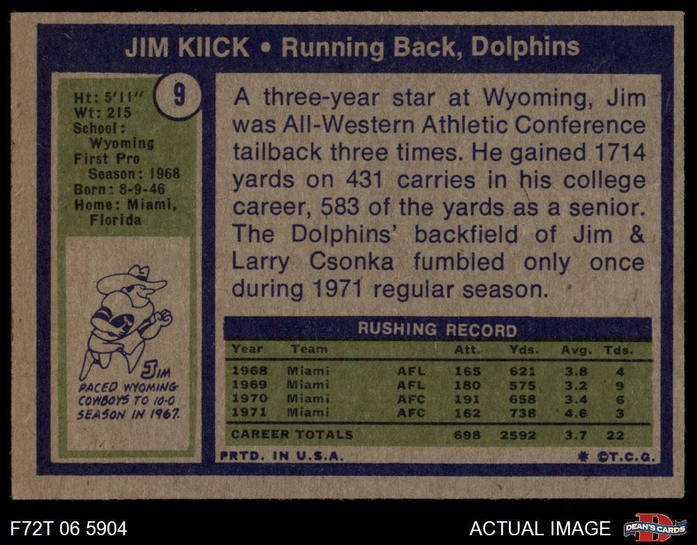 1972 Topps #9 Jim Kiick 4 - VG/EX