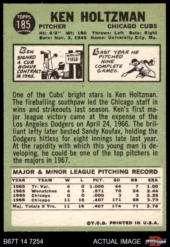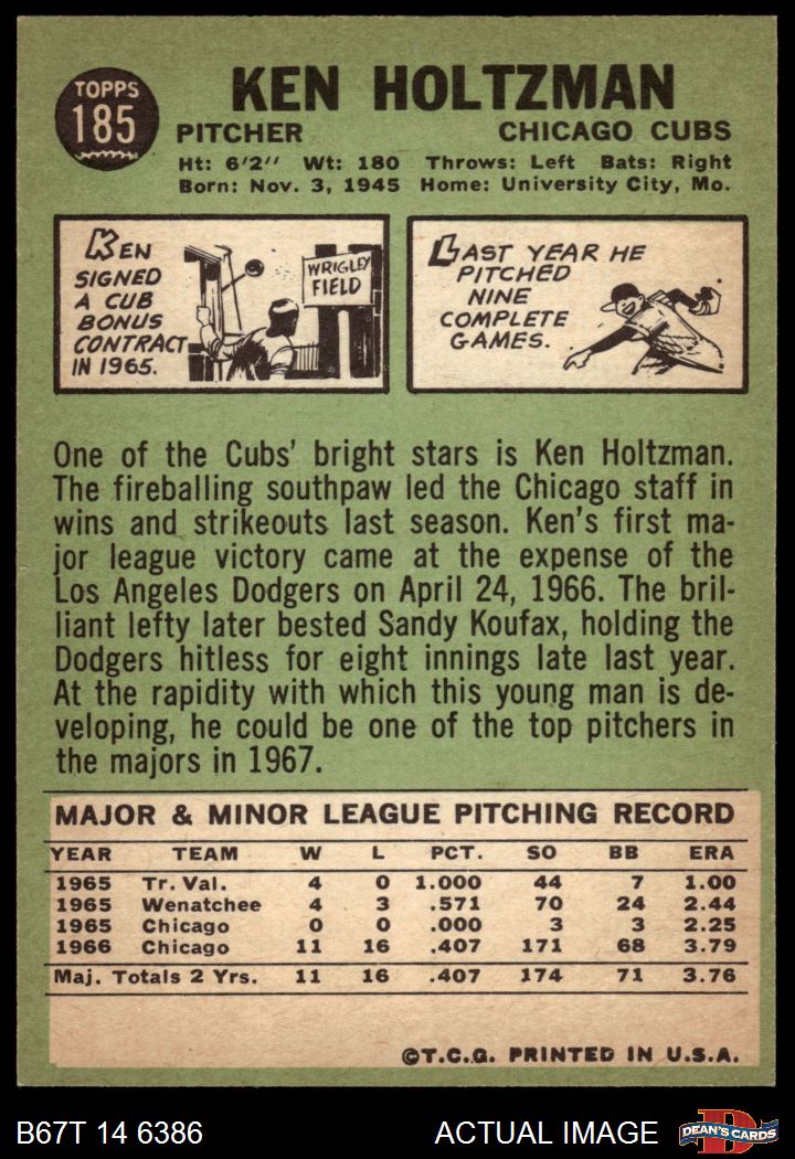 1967 Topps #185 Ken Holtzman 4 - VG/EX