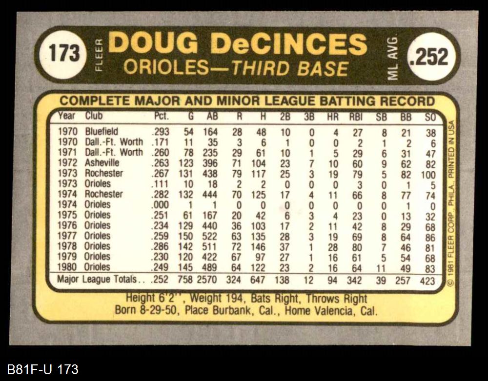 1981 Fleer #173 Doug DeCinces 8 - NM/MT