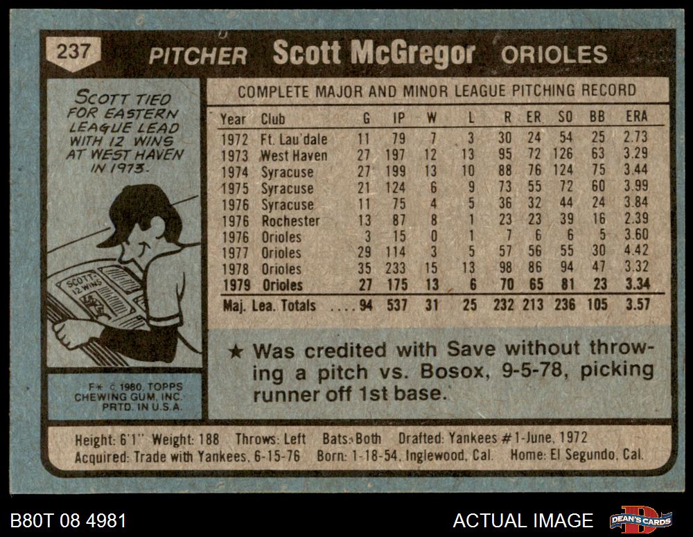 1980 Topps #237 Scott McGregor 7 - NM