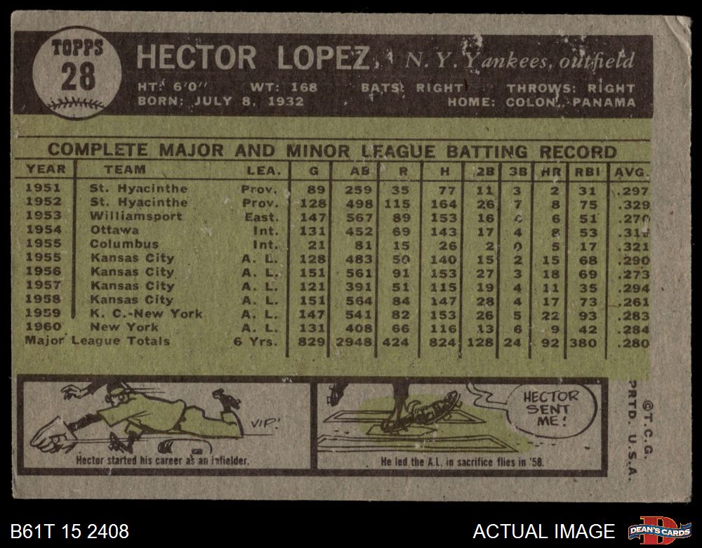 1961 Topps #28 Hector Lopez