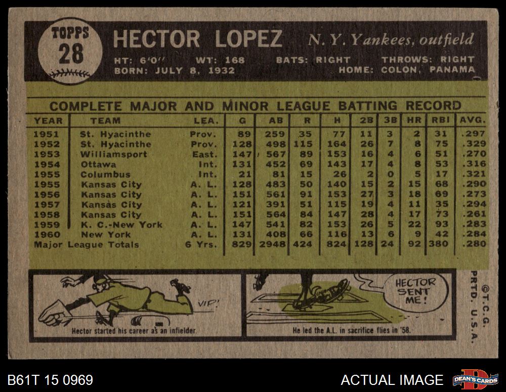 1961 Topps #28 Hector Lopez 3.5 - VG+