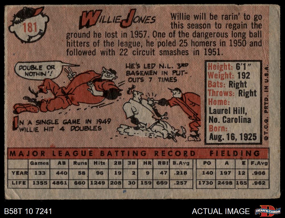 1958 Topps #181 Willie Jones 1.5 - FAIR