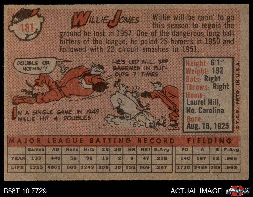 1958 Topps #181 Willie Jones 4 - VG/EX