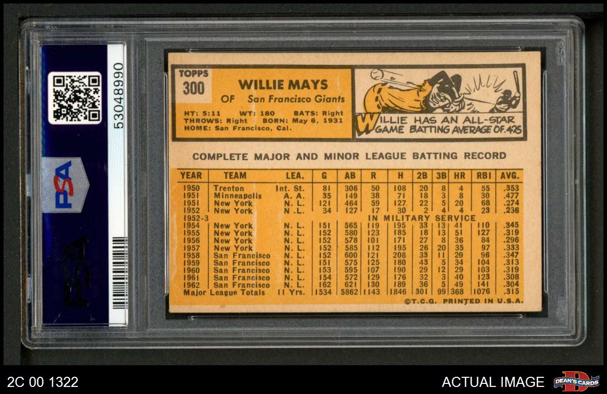 1963 Topps #300 Willie Mays PSA 5 - EX