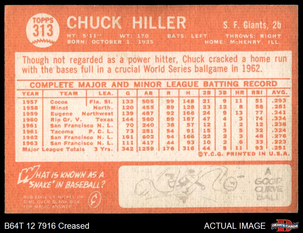 1964 Topps #313 Chuck Hiller