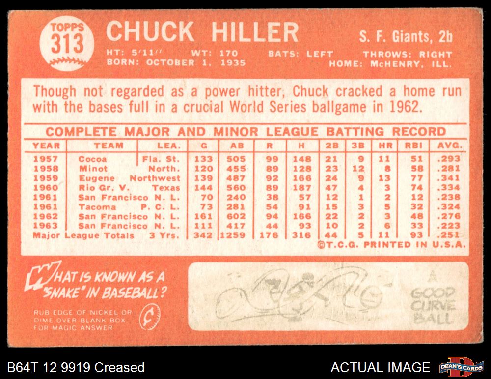 1964 Topps #313 Chuck Hiller 2 - GOOD