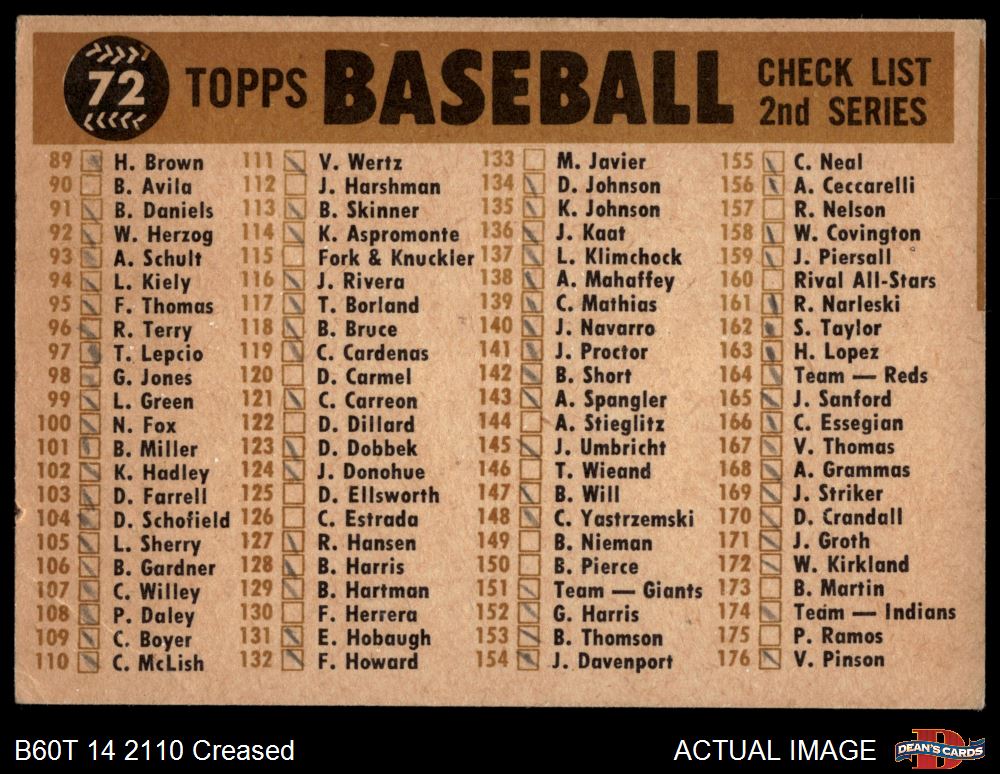 1960 Topps #72 Tigers Team Checklist 3 - VG