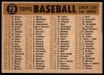 1960 Topps #72  Tigers Team Checklist Front Thumbnail