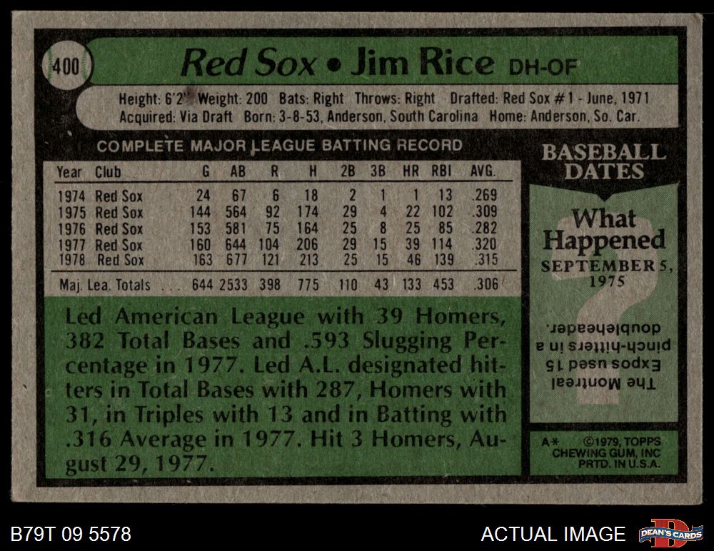 1979 Topps #400 Jim Rice 4 - VG/EX