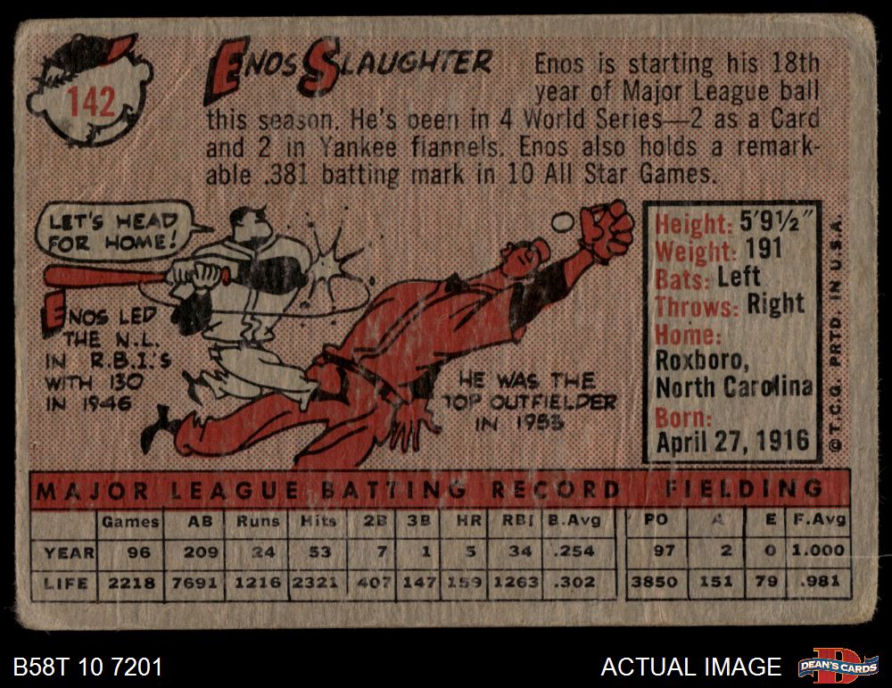 1958 Topps #142 Enos Slaughter AUTHENTIC