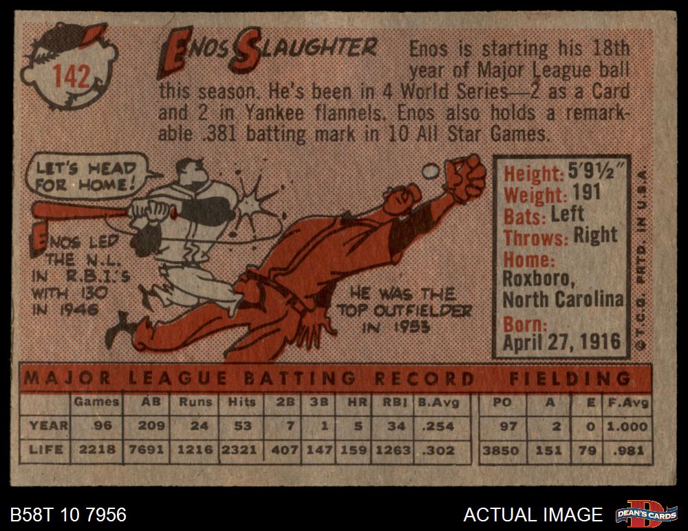 1958 Topps #142 Enos Slaughter 2 - GOOD