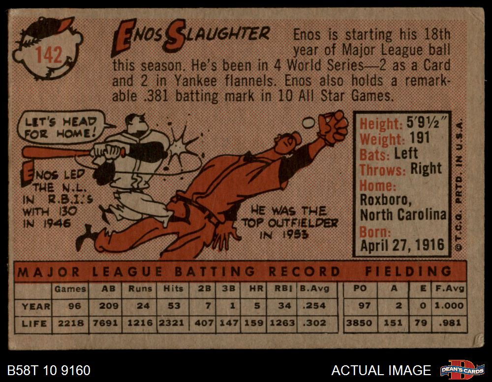 1958 Topps #142 Enos Slaughter 3 - VG